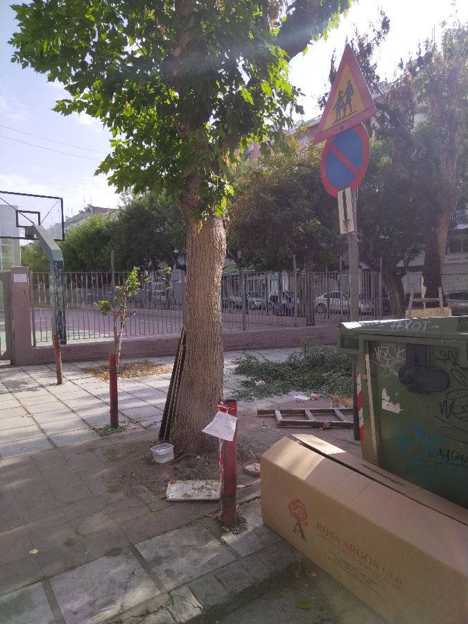 Πεταμένα ογκώδη και σκουπίδια γύρω από τους κάδους έξω από το σχολείο