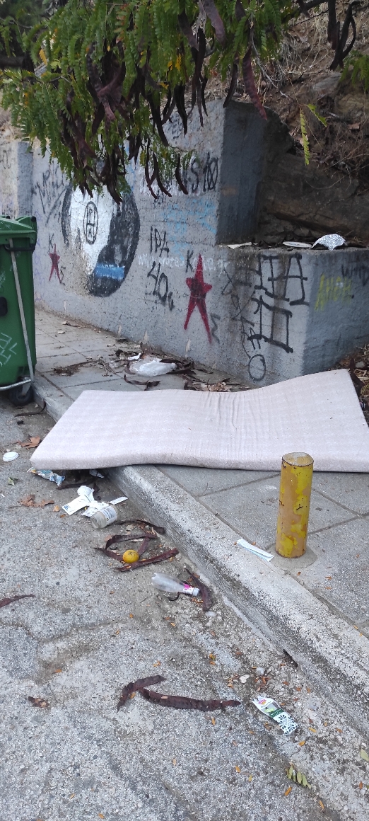 Πεταμένα στρώματα επί της οδού Παύλου Μελά
