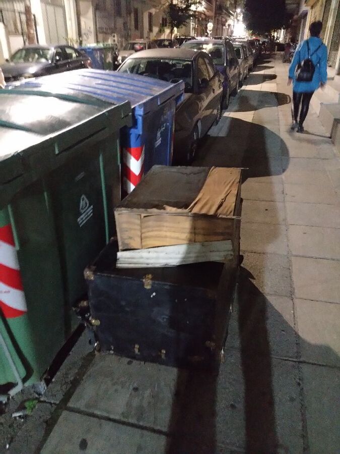 Ογκώδες έπιπλο πίσω από τον κάδο