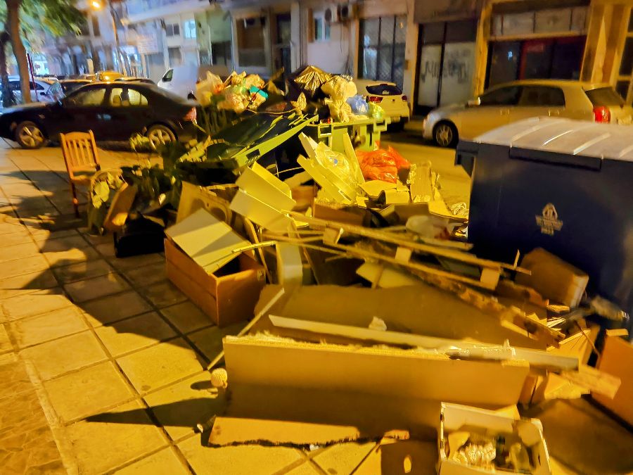Ογκώδη απορρίμματα και σκουπίδια στο πεζοδρομιο