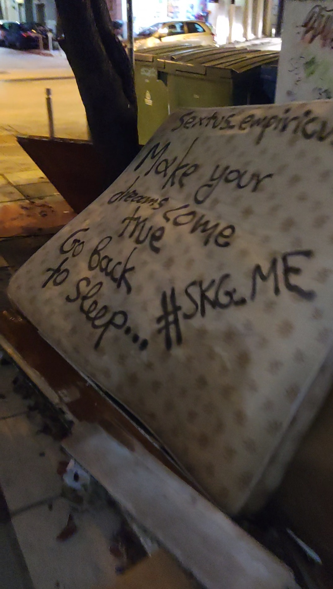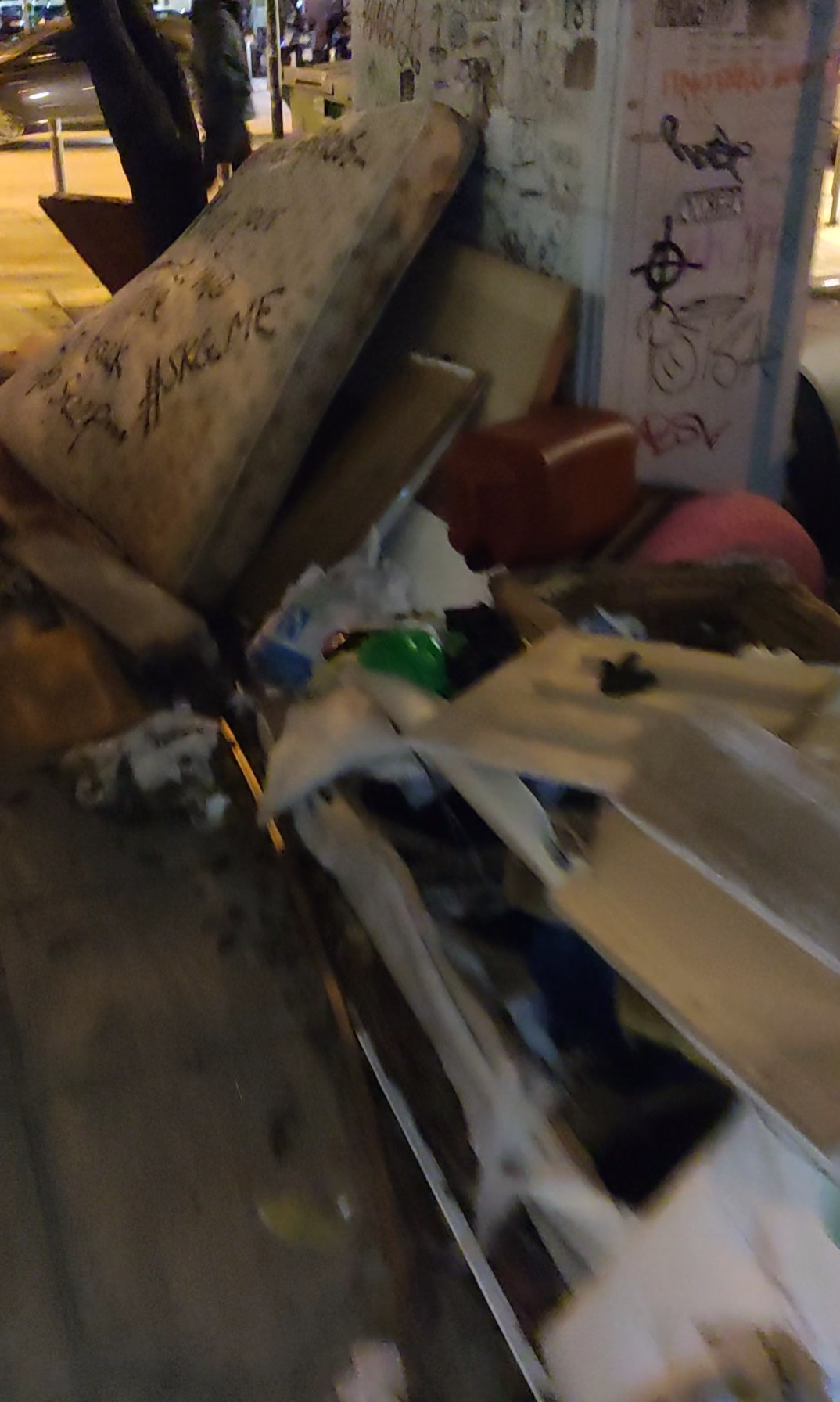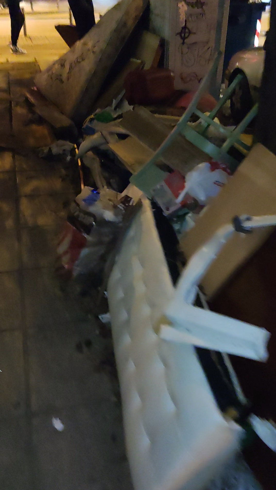 Μπροστά σε Δημοτικό κτήριο, στη γωνία Μάρκου Μπότσαρη με Μαντινείας 30, επικρατεί ένα χάος. Το πεζοδρόμιο είναι απροσπέλαστο λόγω πεταμένων μεγάλων σε όγκο αντικειμένων, συγκεκριμένα κανείς μπορεί να βρει χαρτόκουτα από τηλεοράσεις, ξύλινες καρέκλες, μπιτόνια, καναπέδες και στρώμα κρεβατιού. Προφανώς κάποιος γείτονας βρήκε μια έκτακτη επενδυτική ευκαιρία και εξέφρασε τον σεβασμό του προς τους υπόλοιπους καταλλήλως. Υπάρχουν βέβαια κι άλλες φήμες πως κάποια επιχείρηση με αυτόν τον τρόπο κάνει ανακύκλωση τα προϊόντα της, αλλά κάτι τέτοιο δεν έχει επιβεβαιωθεί για την ώρα.