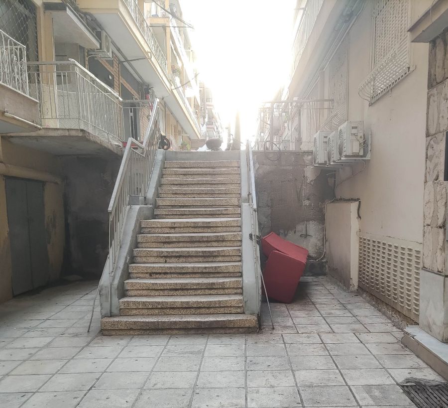 Παρατημένος καναπές δίπλα στις σκάλες.
