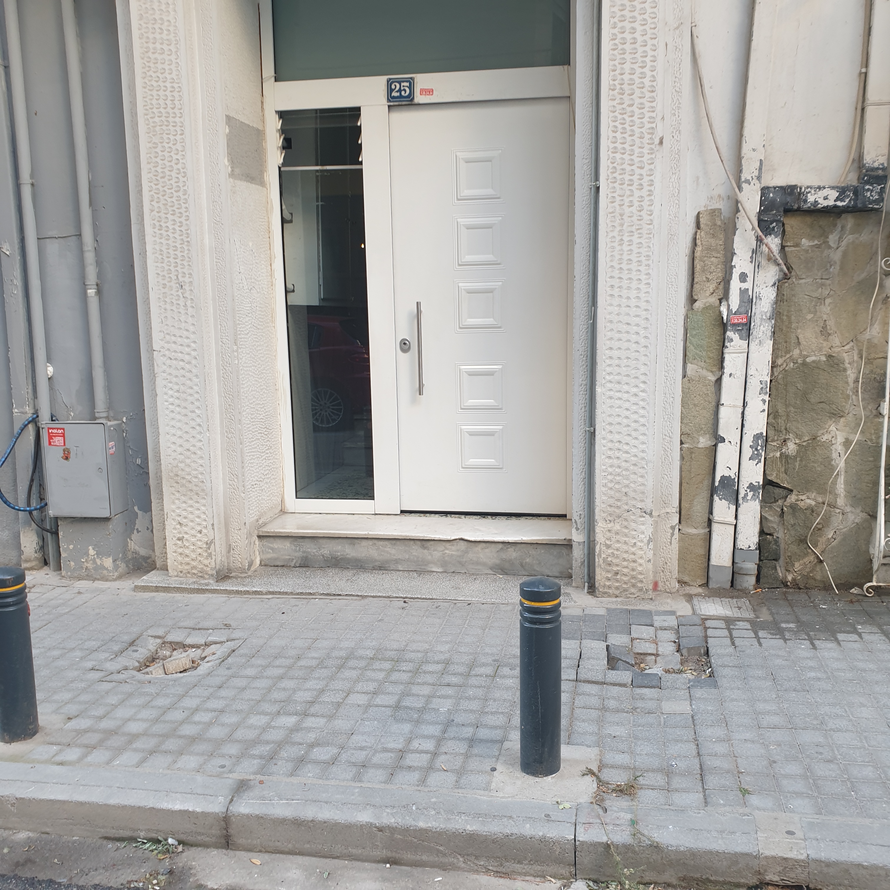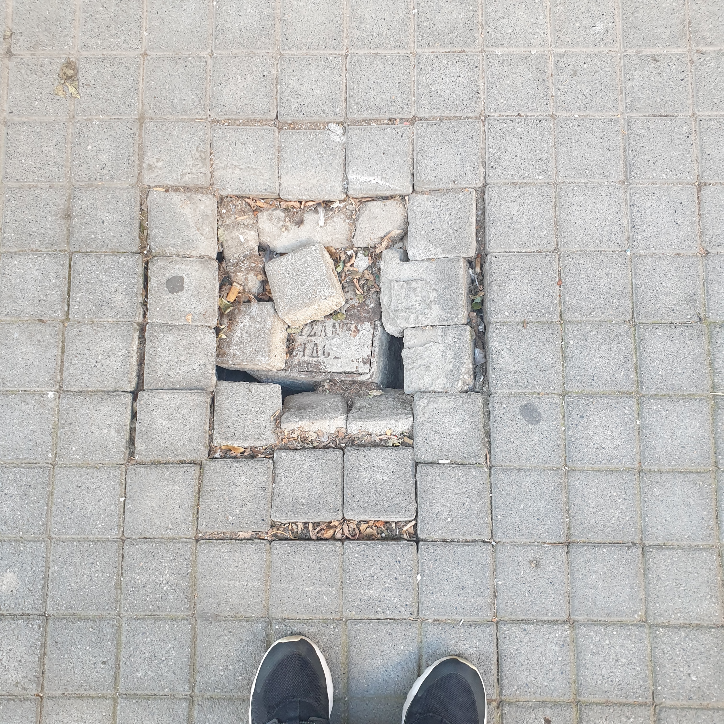 Έχουν δημιουργηθεί δύο (2) ανοίγματα επί του πεζοδρομίου ακριβώς εμπρός από την είσοδο της πολυκατοικίας, με αποτέλεσμα να υπάρχει κίνδυνος ατυχήματος