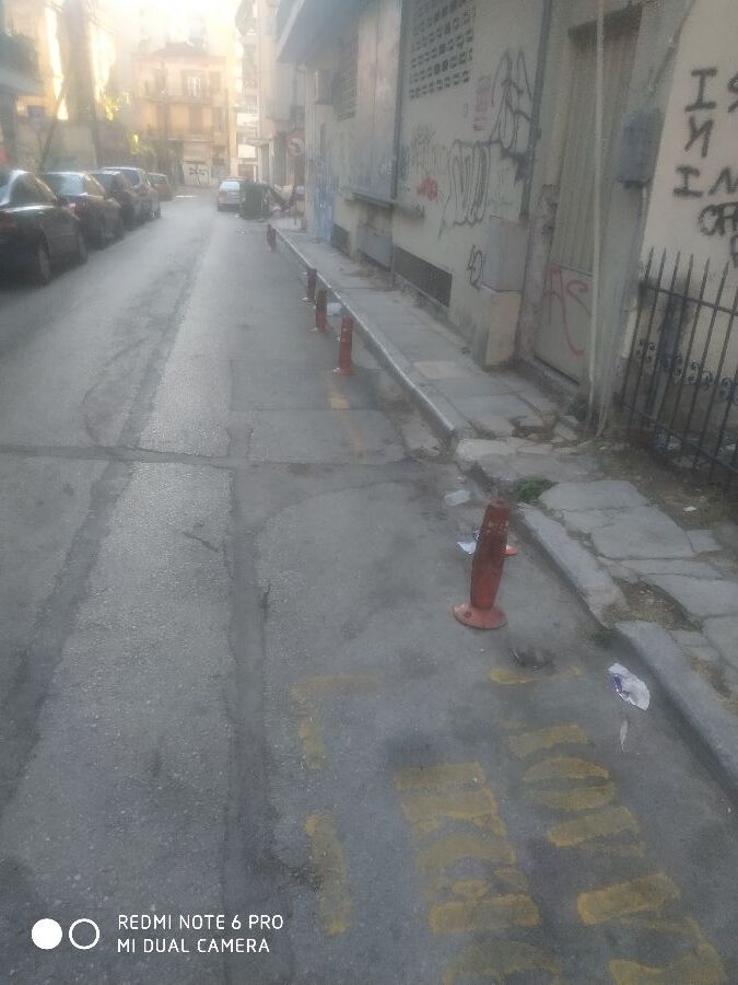 Διάσπαρτα σκουπίδια επί της οδού Σπάρτης και της Χ ΤΡΙΚΟΎΠΗ.