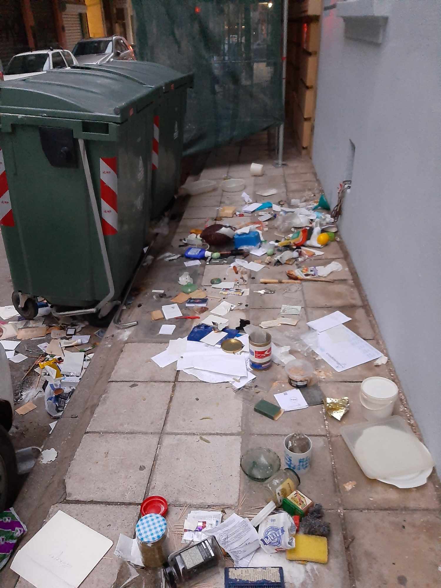 Σήμερα Σάββατο 14/12/24 στις 17.00 περίπου μετά την αποχώρηση του απορριματοφόρου η κατάσταση του πεζοδρομίου επί της Σαρανταπόρου 13! Ερώτηση: δεν είναι υποχρεωμένοι οι υπάλληλοι του Δήμου να καθαρίζουν τα πεζοδρόμια στην περίπτωση που τους σχιστεί κάποια σακούλα, αφού έχουν αδειάσει τους κάδους;;;