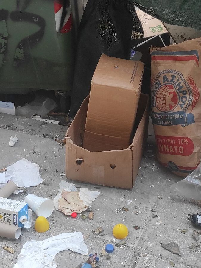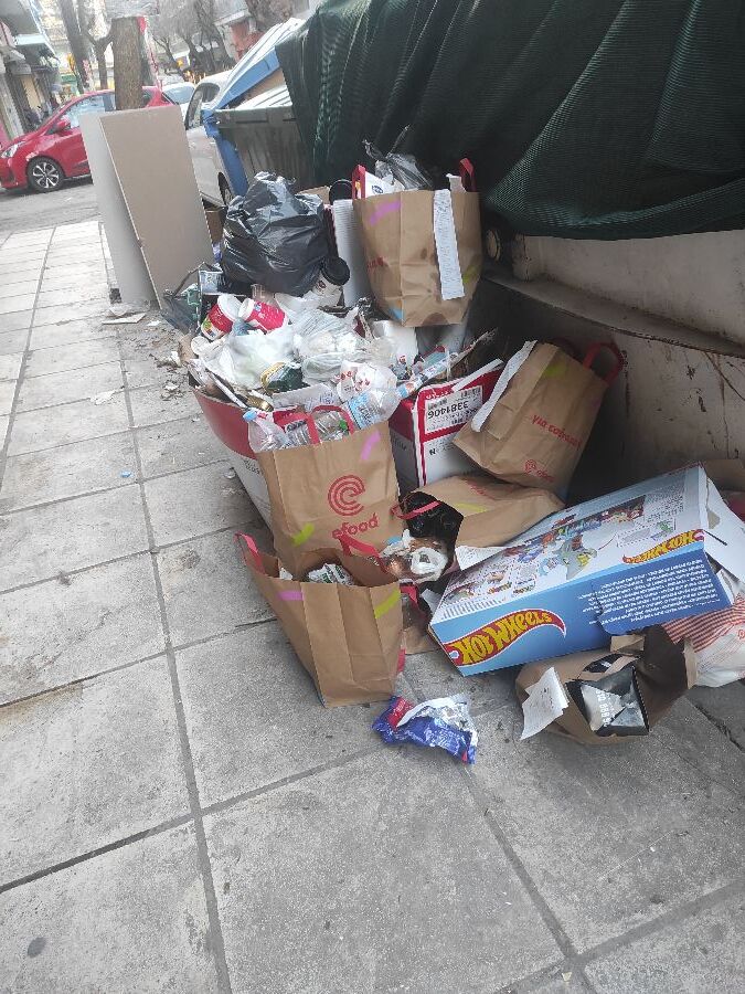 Σε άθλια κατάσταση , ειλικρινά αν δεν περνάει το απορριματοφορο στην ώρα του και όχι μετά από 3 μέρες !!! Θα γίνεται αυτό το πράγμα