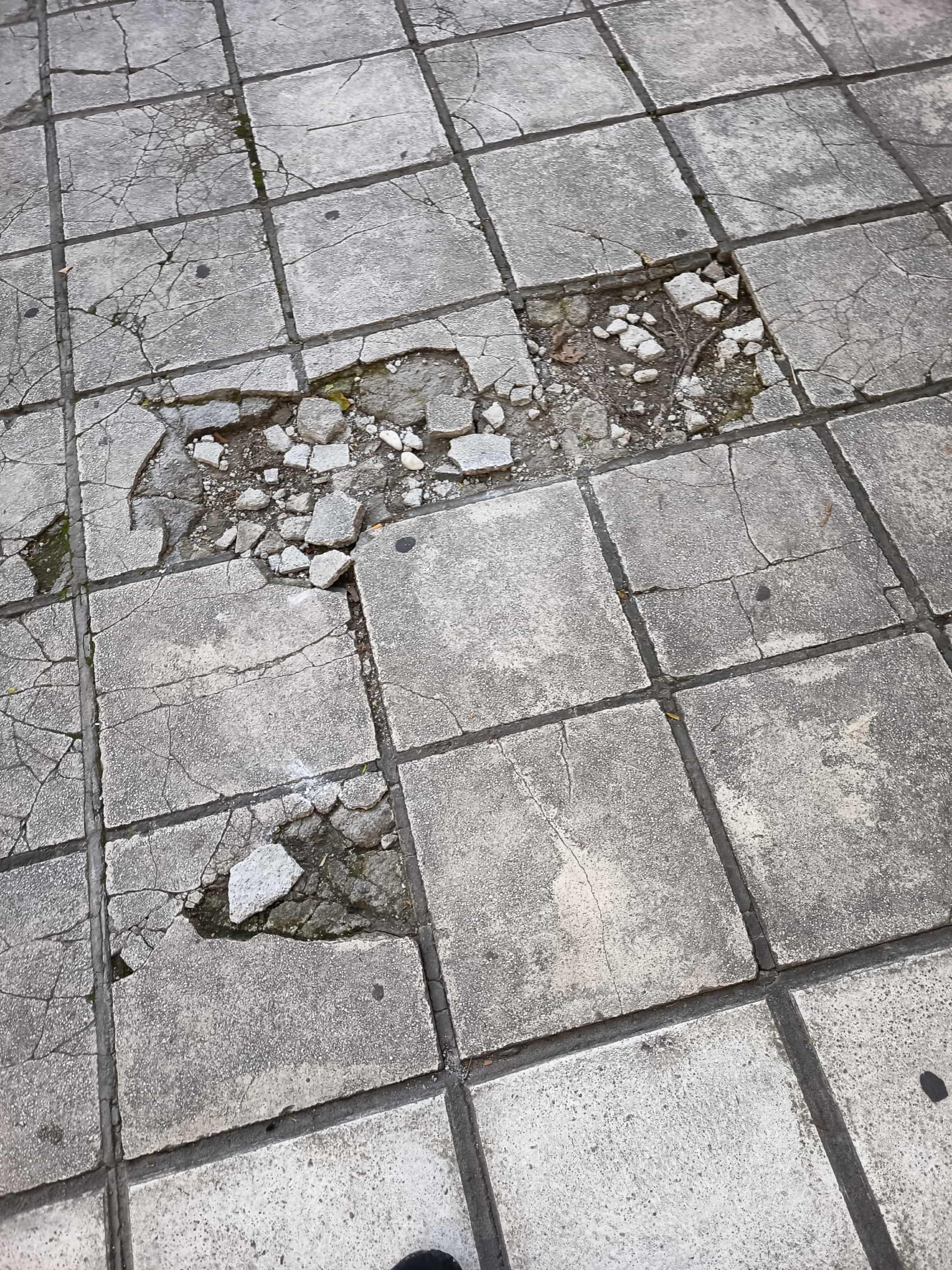 Σπασμένα πλακάκια πεζοδρομίου, χρειάζονται άμεσα αντικατάσταση