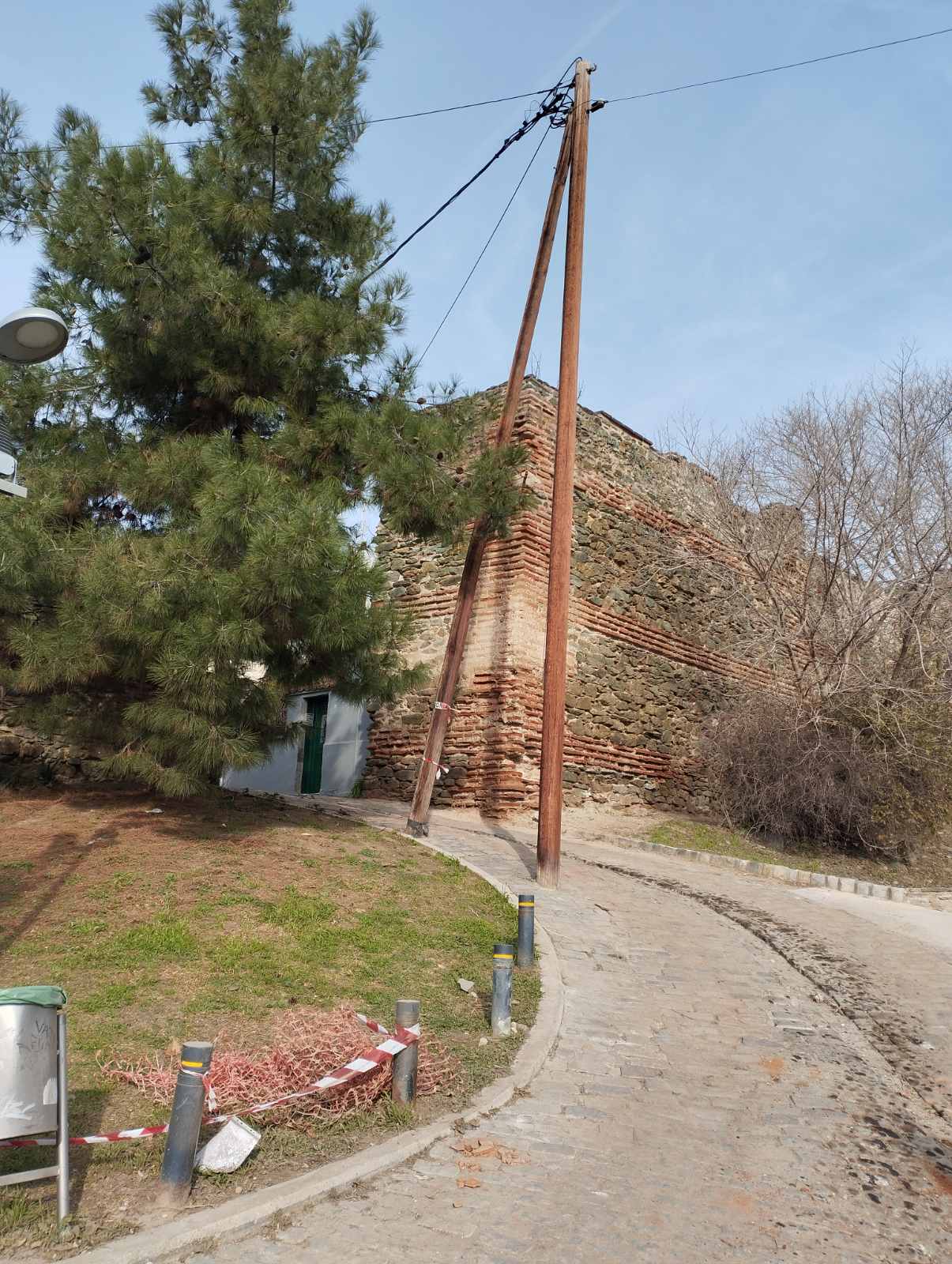 Παρακαλώ πολύ να απομακρυνθούν οι ξύλινες κολώνες της ΔΕΗ από το σημείο γιατί είναι μέσα στον δρόμο και εμποδίζουν την κυκλοφορία των οχημάτων. Στο παρελθόν είχα στείλει αίτημα στον ΔΕΔΔΗΕ και η απάντηση τους ήταν για να γίνει η μεταφορά πρέπει να γίνει αίτημα από τον δήμο Θεσσαλονίκης και να αποζημιωθεί η μεταφορά από τον δήμο Θεσσαλονίκης. Σας παρακαλώ να ενδιαφερθείτε για την μεταφορά τους εκτός του οδοστρώματος ή την υπογειοποίηση των γραμμών όπως συνηθίζεται σε σημεία όπου παρουσιάζουν τουριστικό ενδιαφέρον όπως το συγκεκριμένο σημείο. Επίσης παρακαλώ πολύ να δοθεί μια διαφορετική κλίση και ευθεία στον δρόμο έτσι ώστε να γίνει πιο ασφαλής. Να προσθέσω ότι οι κυβόλιθοι που υπάρχουν στο σημείο γλιστράνε. Έχω δει επανειλημμένα να παίρνει προς τα πίσω αυτοκίνητα τα οποία καβαλάνε το υπάρχον προστατευτικό τοιχίο και πέφτουν από ψιλά στον δρόμο επί της οδού Κάστρων.