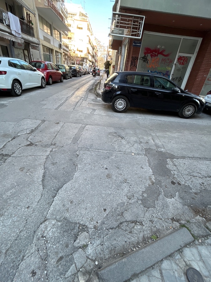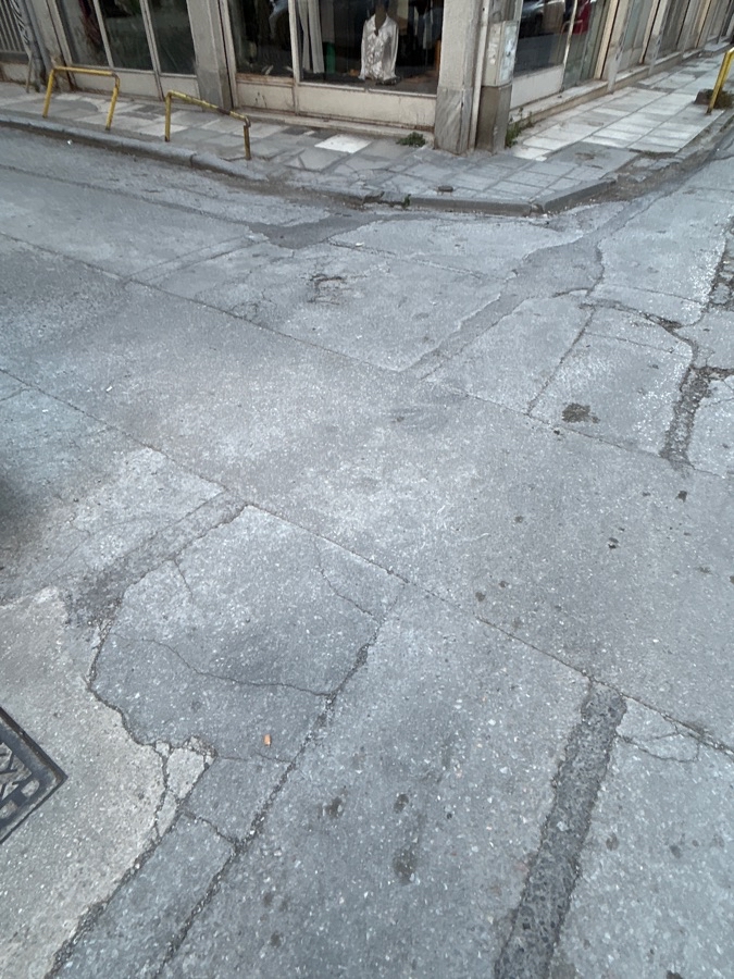 Περνάνε κάθε μέρα ηλικιωμένοι και δεν μπορούν να ανέβουν και πάνε από το δρόμο και είναι και ψηλό το πεζοδρόμιο. Παρακαλώ να μπει μπάρα γραμμές διαβάσεις