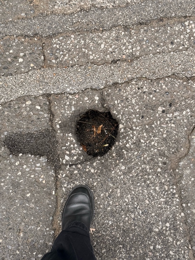 Εχει γίνει ξανά ανάρτηση με το πρόβλημα στην οδο τσελιου οπου η τρύπα ήταν μικρότερη . Ειναι κούφια απο κάτω και υπάρχει περίπτωση να υπάρξει ατύχημα σε περίπτωση μεγαλύτερου ανοίγματος