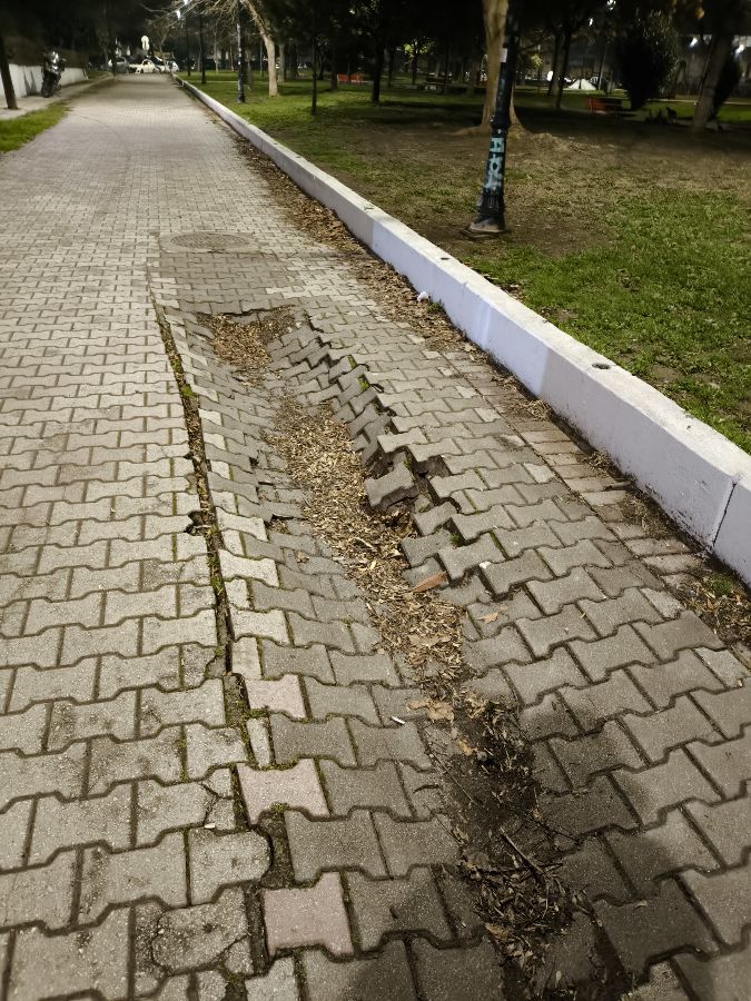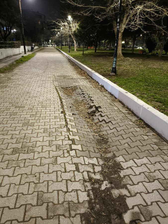 Έχει υποχωρήσει το έδαφος και έχει γίνει λακούβα, είναι στο πάρκο,πέφτουν πεζοί και παιδια