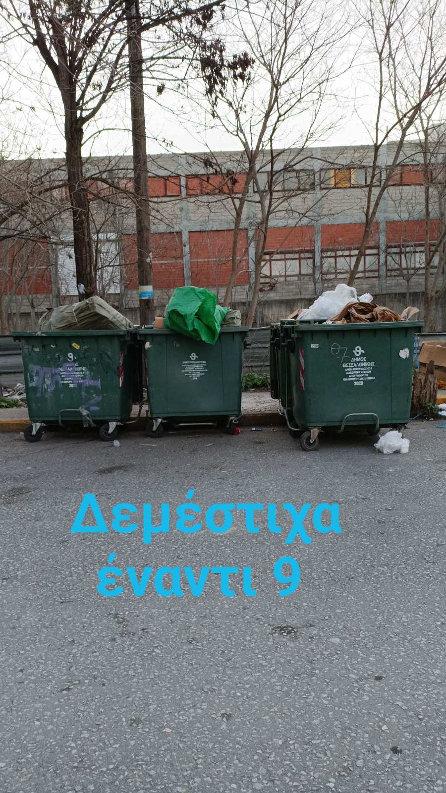 - Σε συνέχεια του αιτήματός σας,σας ενημερώνουμε ότι αυτές θα ενταχθούν στον τακτικό προγραμματισμό της Διεύθυνσης Καθαριότητας & Μηχανικών Μέσων. Η υπηρεσία μας θα προβεί στις απαραίτητες ενέργειες για τη διεκπεραίωση του αιτήματός σας,σύμφωνα με τις επιχειρησιακές δυνατότητες και το υφιστάμενο πρόγραμμα εργασιών.Σας ευχαριστούμε για τη συνεργασία. Με εκτίμηση, Διεύθυνση Καθαριότητας&Μηχανικών Μέσων Δήμου Θεσσαλονικης.