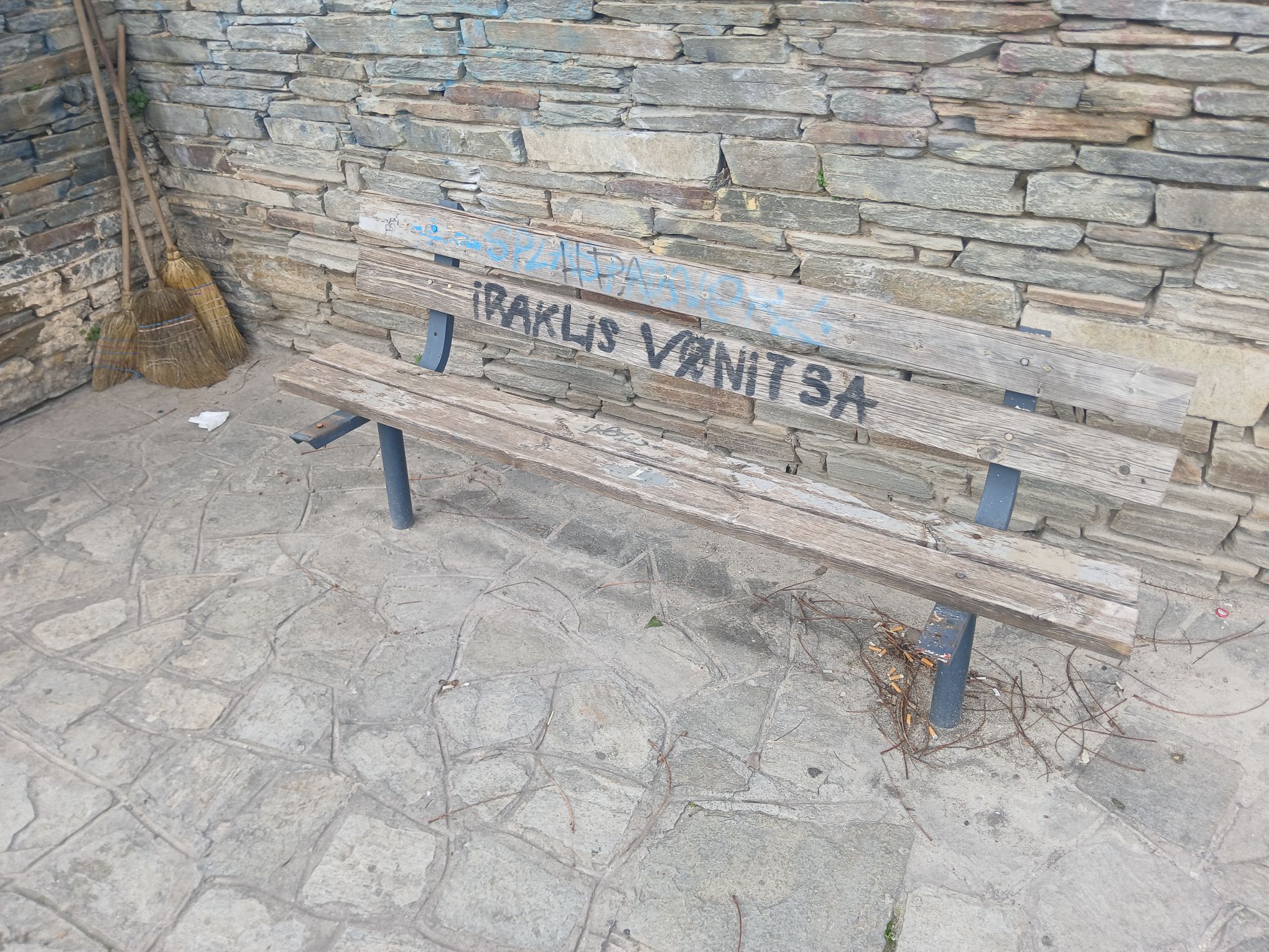 Μια τάβλα που λείπει απο το παγκάκι. Κάτω απο τον δρόμο της Βιζυηνού
