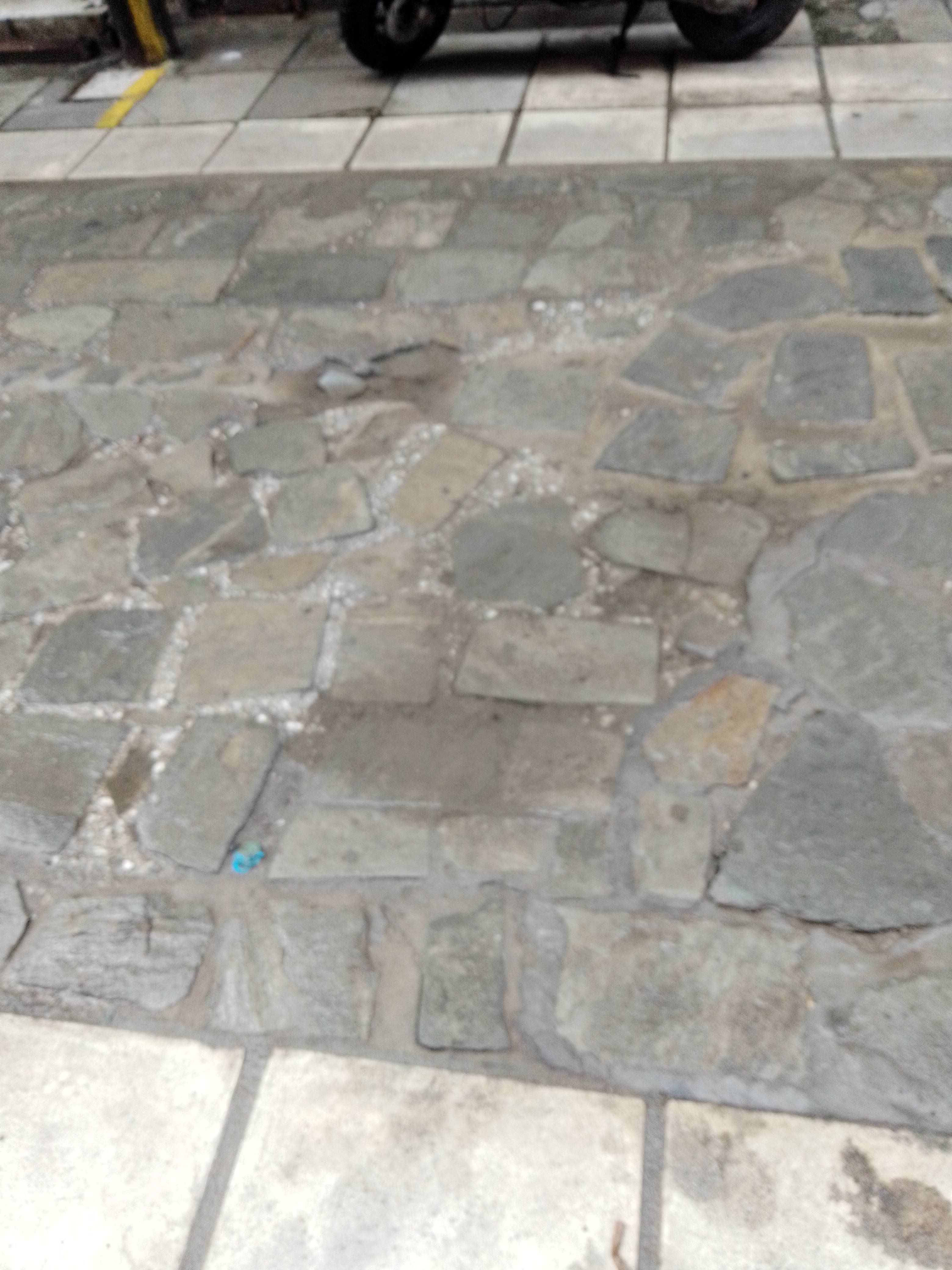 Σπασμένες πλάκες πεζοδρομίου εδώ και πάρα πολύ καιρό. Είναι επικινδυνο το πεζοδρόμιο για τους πεζούς.
