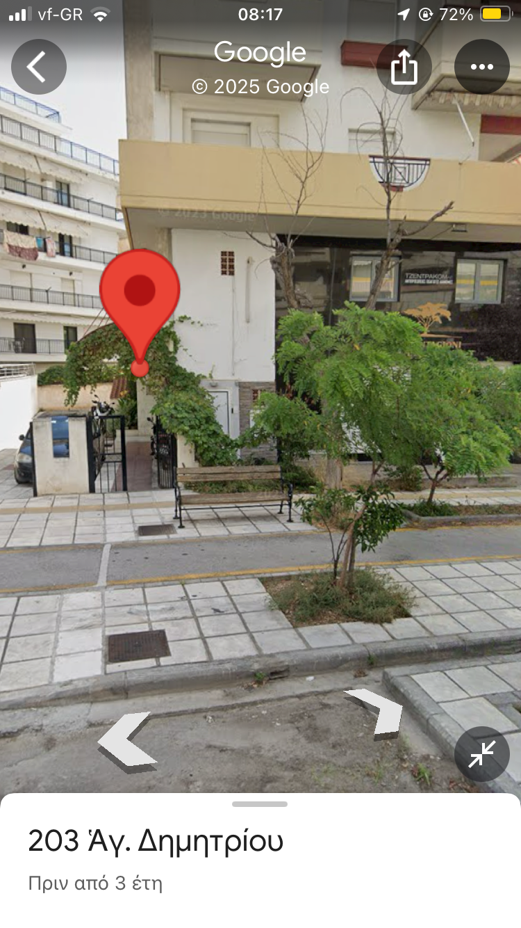 Η ακριβής διεύθυνση μου είναι Αμμολιανής 1 με προέκταση Αγίου Δημητρίου 203. Όπως βλέπετε το παγκάκι έχει καταστραφεί. Παρακαλείστε για την άμεση αντικατάσταση του ώστε να μπορούμε να καθόμαστε με ασφάλεια