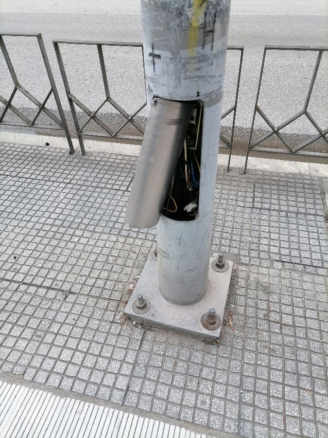 Οδός Τσιμισκή με Αγγελάκη το δεύτερο φωτιστικο στην δεξιά πλευρά στην στάση του λεωφορείου οασθ της Χανθ, το καπάκι της κολόνας φωτισμού θελει βίδωμα.
