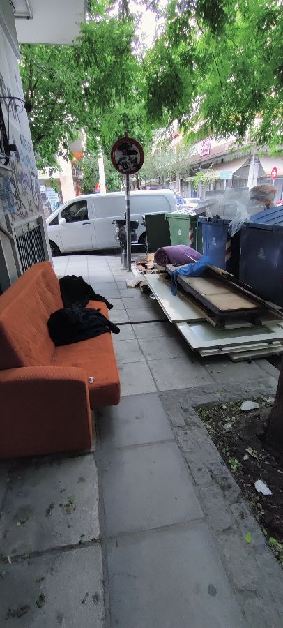 Στην διασταύρωση Νάτσινα και Αντωνίου Δανιολου, Χαριλάου, έχουν εγκαταληφθεί ένας καναπές και μια παλιά πόρτα με το αποξηλωμενο πλαίσιο της. Η πόρτα έχει σπασμένους καθρέπτες και τα πλαίσια έχουν μεγάλα καρφιά που προεξέχουν. Πέραν του ότι εμποδίζουν την διέλευση των πεζών, υπάρχει κίνδυνος τραυματισμού από τον σπασμένο καθρέφτη και τα καρφιά που προεξέχουν.