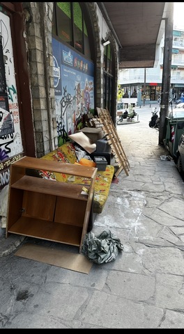 Υπαρχουν πεταμενα στρωματα , ξυλς και τσουβαλια εξω απο καδο στην Φειδιου 5 , στην πλατεια Μαβιλη στον Βαρδαρη Θεσσαλονικης