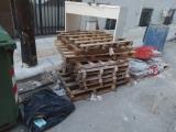 Περισυλλογή πλάκες πεζοδορμίου, τσιμέντο, παλέτες, βαρέλι με νερό