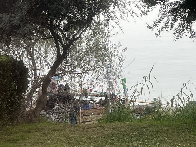 Στην οδό Θ. Σοφούλη 70Α (Δήμος Θεσσαλονίκης) μπροστά στη θάλασσα, εδώ και μήνες κάποιοι έχουν καταλάβει την παραλία ξεκινώντας με μια πρόχειρη κατασκευή για δήθεν ψάρεμα και έχοντας φτάσει σήμερα να υπάρχει μια παράγκα στην οποία περνάνε τη μέρα αλλά και μαγειρεύουν...