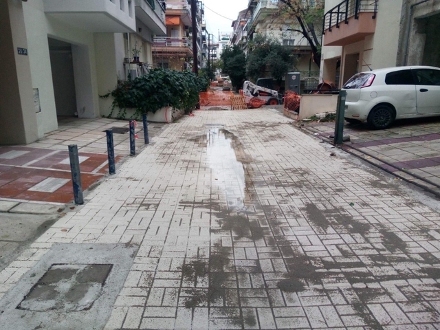 Επί της οδού Φωτίου 11 στην Άνω Πόλη ο δρόμος είναι γεμάτος λακκούβες και ξηλωμένες πλάκες πεζοδρομίου τα οποία καθιστούν τη διέλευση των πεζών επικίνδυνη.