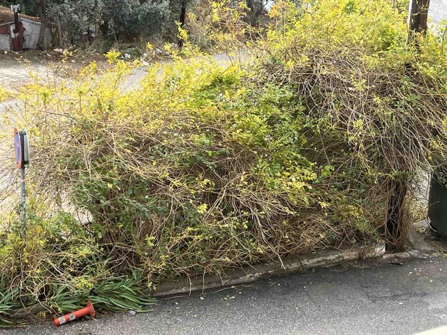 Κλάδεμα φυτά απο παρτέρι, προεξέχουν τα κλαδιά και κατα την έξοδο από την οικοδομή γρατζουνίζεται το όχημα ή (όποιο άλλο όχημα κατα τη διέλευση του αν είναι ογκώδες) συν ότι η πιναδίδα μη στάθμευσης δεν είναι πλέον ορατή!