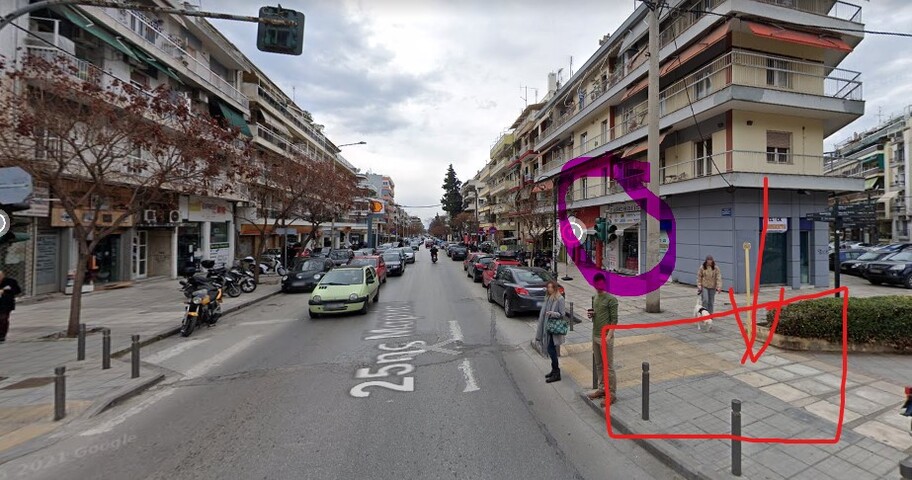 στη Μαρτιου με Εγνατια στο ρευμα πoυ κατεβαινει τη Μαρτιου εχει τοποθετηθει καδος για ρουχα, κ το φαναρι δε φαινεται !!!!!