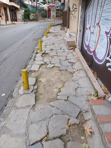 Εκτός που στην οδό μας έχει αρκετές πλάκες σπασμένες, και στην θέση που είναι το δέντρο η ρίζα βγήκε προς τα έξω η πλάκα υπεριψωθηκε και αρκετές φορές σκονταφτουμε. Ο δρόμος σε αρκετά σημεία έχει λακκούβες οι οποίες χρειάζονται επιδιόρθωση οι οποίες είναι επικυνδηνες...