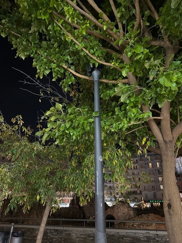 Καμένη λάμπα σε παρτέρι στην οδο Ναυαρίνου στον πεζόδρομο πάνω από τα αρχαία - μπροστά από τη θρακική εστία Θεσσαλονίκης