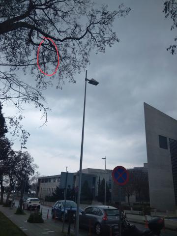 Στο πλάϊ του Δημαρχειου, δεξια απο την είσοδο του παρκου ανθοκομικής, κρέμεται ενα σπασμένο μεγάλο κλαδι ακριβως πανω απο πεζοδρόμιο και κρατιεται απο ενα μικρο κομμάτι. Αν φυσήξει θα πεσει