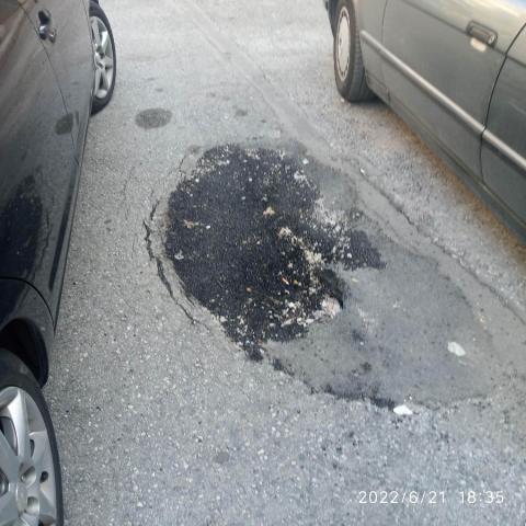 Αφορά τρύπα που έχει δημιουργηθεί 1-2 χρόνια πρίν από εργασίες (πιθανόν της ΕΥΑΘ) και έχει μπαλωθεί πρόχειρα, επιφανειακά, για αυτό και ξαναάνοιξε καθώς υπάρχει βαθύτερο αίτιο. Βλ.αιτημα #77222 της 08/08/2021 όταν αποκαταστάθηκε προσωρινά στις 23/09/2021. Βρίσκεται σε σημείο με άσφαλτο...