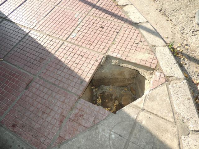 Στο πεζοδρομιο υποχωρησε η πλακα και απο κατω υπαρχει μεγαλο κενο. Μια γυναικα επεσε μεσα και χτυπησε σοβαρα το ποδι της. Το σημειο βρισκεται στην οδο Βοσπορου 67 απεναντι απο το σχολειο και το νηπιαγωγειο.