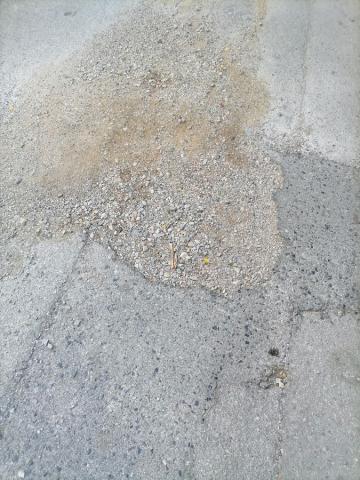 Λακκούβα στον λιθόστρωτο δρόμο ήπιας κυκλοφορίας. Εκτός από την επικινδυνότητα για κάποιο μηχανάκι ή ποδήλατο, σε κάποια μέρα με βροχή όπως σήμερα όποιο αυτοκίνητο περνάει καταβρέχει τον πεζό που περπατάει δίπλα του μέσα από τα κολονάκια