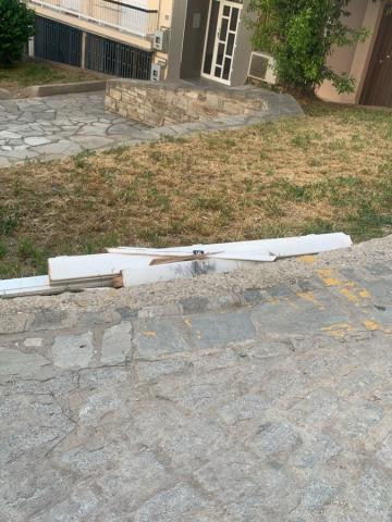Ξύλα & κομμάτια πόρτας σε 2 σημεία στο πάνω μέρος της πλατείας.