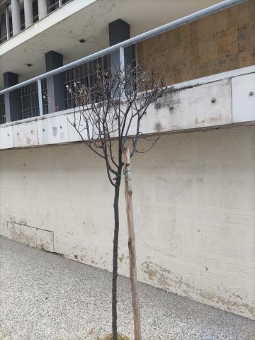 Ξεραμένα νεοεμφυτευμένα δεντράκια στην αναπλασμένη περιοχή του Δικαστικού Μεγάρου. Μπροστά στο Δικαστικό Μέγαρο. Για την ακρίβεια απέναντι από το γραφείο της ΕΥΑΘ. Πράξτε τα δέοντα!
