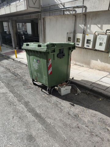 Ο κάδος ανακύκλωσης στη γωνία Αγίου Στυλιανού με Κλεάνθους είναι σπασμένο