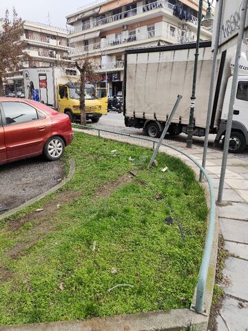 Η περίφραξη του χώρου πρασίνου με μεταλλικούς σωλήνες είναι επικίνδυνη γιατί έχει σημεία που έσπασαν.