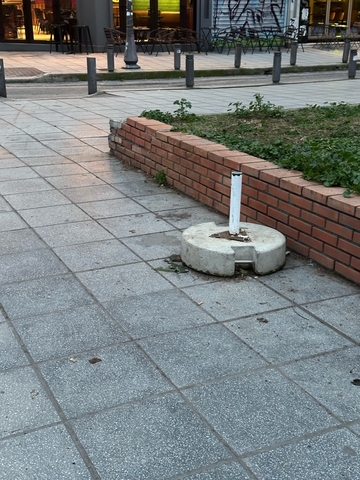 Ξεχασμενη βαση ομπρελας πίσω από ροτόντα πάνω στην πλατεία!