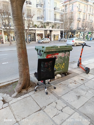 Ογκώδη αντικείμενα, δίπλα και πίσω απ' τον κάδο.