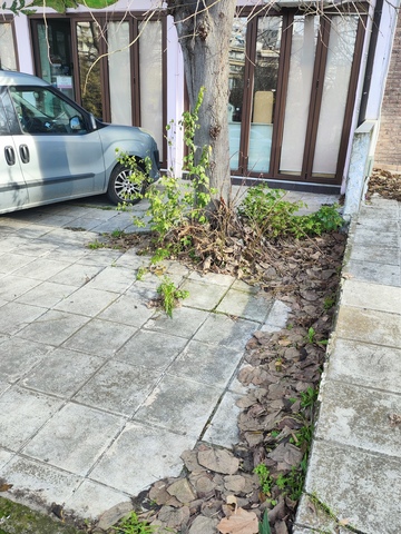Ρίζες δέντρου έχουν ξηλώσει τις πλάκες πεζοδρομίου και συνεχίζουν σε μεγαλύτερη επιφάνεια.