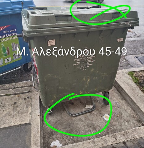 Πήραν τον μεγάλο κάδο απορριμμάτων και έφεραν ένα μικρό πλαστκό κάδο απορριμμάτων ο οποίος δεν επαρκεί και οι σακκούλες με τα σκουπίδια έίναι έξω από τον κάδοι