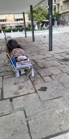 Άστεγος εχει αφήσει τα πράγματα του στην πλατεία Ναυαρινου