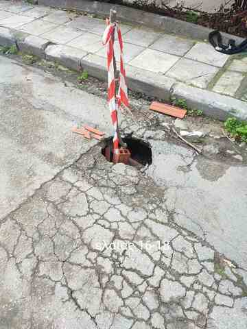 Στην γωνία Χαιρωνείας με Δημητρακοπουλου η inalan έσκαψε για να βάλει οπτική ίνα και στο μπάλωμα που έκαναν μετά με άσφαλτο άνοιξε τρύπα με βάθος 10 εκατοστά και αν πέσει μηχανάκι η πατίνι η πτώση είναι εξασφαλισμενη με ότι αυτό συνεπάγεται.