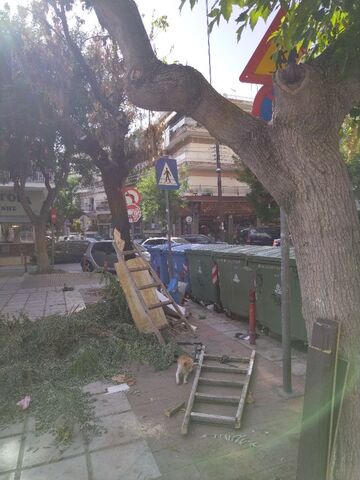 Αλεξάνδρου Φλέμινγκ 10 απέναντι, να κλαδευτεί το πλατάνι γιατί με τον δυνατό αέρα έχουν σπάσει κάποια κλαδιά και έχουν σκαλώσει στο δέντρο