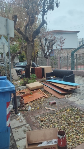 Ογκώδη αντικείμενα φυσικά δίπλα στους κάδους, δίπλα έχει σχολείο! Έχει ξαναγίνει αίτηση για το ίδιο μέρος, για τα ίδια σημεία γενικώς, αλλά τελείωσαν οι εκλογές και σταμάτησε η συλλογή τους; έλεος.