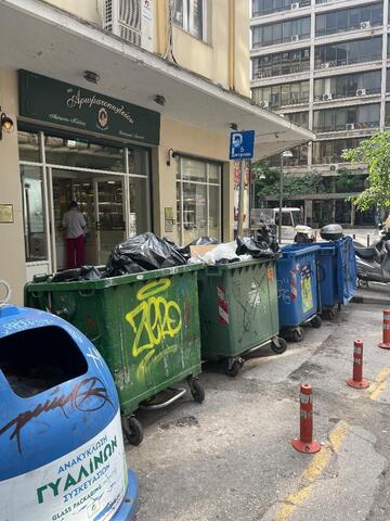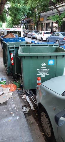 Δεν μπορούμε να αναπνευσουμε..ελάτε και βάλτε τους κάδους στις θέσεις τους. Ολυμπου γωνία με Πλάτωνος 39..Φέρνουν τους κάδους εδώ για να παρκάρουν κάποιοι έξυπνοι.. Οι κάδοι ανεβαίνουν και στο πεζοδρόμιο μπροστά στο μπαλκόνι μου..Οι κάδοι αυτοί ανήκουν αλλού αν το ψαξετε