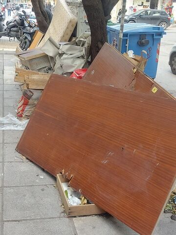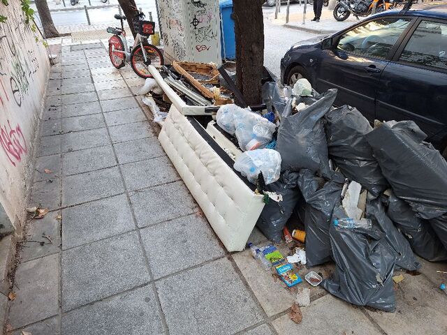 Ογκώδη απορρίμματα και σκουπίδια στο πεζοδρομιο