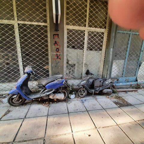 Εγκαταλελειμμένα μηχανάκια σε πεζοδρόμιο