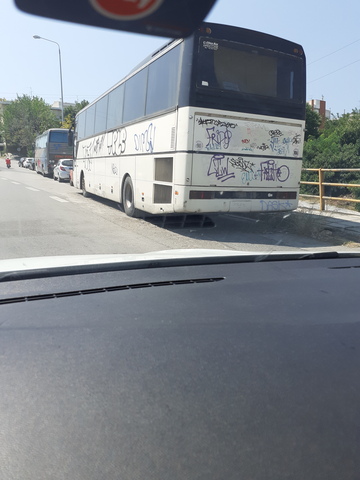 Πριν την αερογεφυρα Βουλγαρη στο ρευμα προς Χαλκιδικη εχει χρονια παρατημενο ενα λεωφορείο εστια μολυνσης