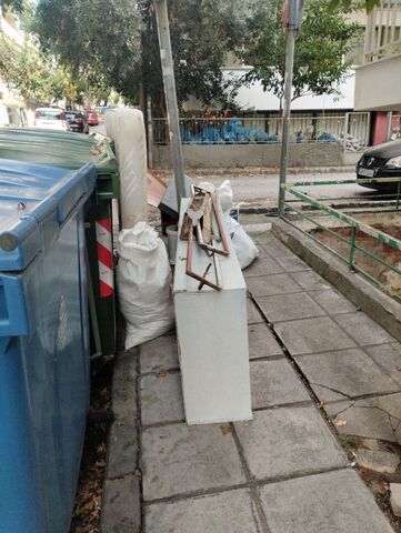 Οδός Κλεάνθους 64 πεταμένα ξύλα πίσω από το κάδο ανακύκλωσης